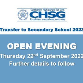 Parents and students in Year 6 in September are invited to the Carshalton High School for Girls (CHSG) Open Evening on Thursday 22nd September 2022.